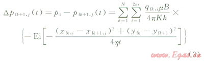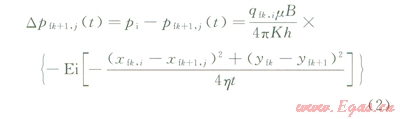 式(4)就是所有裂縫線匯單元同時生產時間t后在O點產生的壓力降落響應方程。