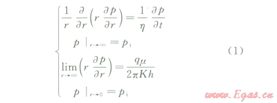 式中r為徑向距離,m;p為地層壓力,MPa;h為導壓系數,m2·MPa/(mPa·s);h=K/(mcj);m為流體黏度,mPa·s;c為地層綜合壓縮系數,MPa-1;t為生產時間,ks;pi為原始地層壓力,MPa;q為井產量,m3/ks;h為儲層厚度,m;K為巖石滲透率,D;j為孔隙度。