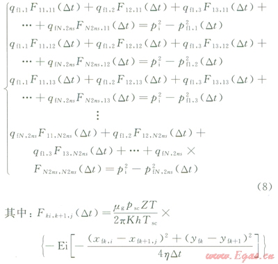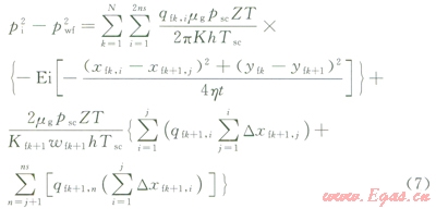 如果井底壓力(pwf)已知,聯(lián)立方程式(5)、(8)便可求得每個線匯的產量,根據式(9)就可求得總產量。