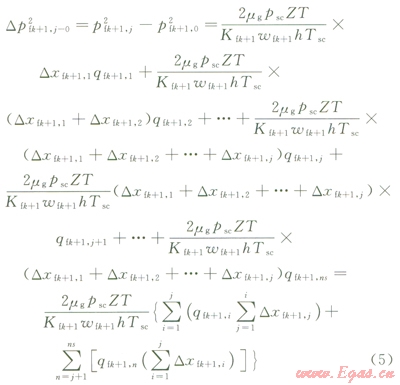 式(5)中第一項表示第k+1條裂縫第j及之前線匯單元產量在裂縫內流動時產生的壓降;第二項表示第k+1條裂縫第j個之后線匯單元產量在裂縫內流動時產生的壓降。