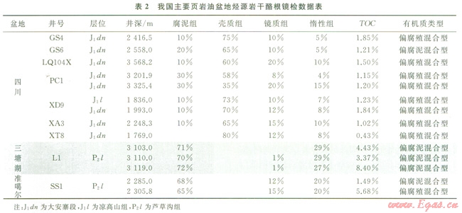 藻類勃發(fā)就是浮游藻類在一定條件和時期形成單屬種的極度生長和富集,具有強烈的排他性。浮游藻類分布極其廣泛,地球表面只要有水的地方,一般都有其蹤跡。藻類勃發(fā)在現(xiàn)代海洋和湖泊往往呈現(xiàn)季節(jié)性,主要類型為硅藻、顆石藻和溝鞭藻等[20]。影響藻類勃發(fā)的因素主要有光照、水溫、營養(yǎng)鹽供給、pH值和溶解氧等,其中前3個因素最為重要[21-23]。藻類勃發(fā)能在短時間內產生大量有機質聚集,具有極高的生產力,其直接后果是形成藻類沉積紋層。我國主要優(yōu)質烴源巖均發(fā)現(xiàn)藻類富集,如渤海灣盆地古近系沙河街組油頁巖中保存有大量層狀藻類體、結構藻類體和藻屑體,且地球化學分析表明藻類是原油的直接來源[24];鄂爾多斯盆地上三疊統(tǒng)長7段油頁巖的有機質來源以藻類為主,陸源高等植物等貢獻十分有限[25];松遼盆地上白堊統(tǒng)青一段湖相富有機質泥頁巖以藻類為有機質主要來源[26];四川盆地下志留統(tǒng)龍馬溪組產氣頁巖也以藻類為主要生烴來源。筆者等對我國主要致密油產層的烴源巖進行了取樣分析,發(fā)現(xiàn)致密油普遍高產的準噶爾和三塘湖盆地的蘆草溝組烴源巖有機質類型以偏腐泥混合型為主,藻類占主導的腐泥組含量較高,一般大于65%;而致密油普遍低產的四川盆地下侏羅統(tǒng)烴源巖有機質類型以偏腐殖混合型為主,腐泥組含量偏低,一般小于30%(表2)。