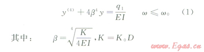式中1為管道截面慣性矩,K0為地基系數(shù),D為管道外徑,E為鋼材的彈性模量??赏茖?dǎo)出: