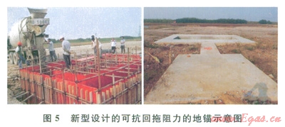 1)設(shè)計特殊地錨。通過計算回拖阻力,設(shè)計了專門針對大噸位回拖阻力的地錨(圖5),以抵抗大的回拖阻力。