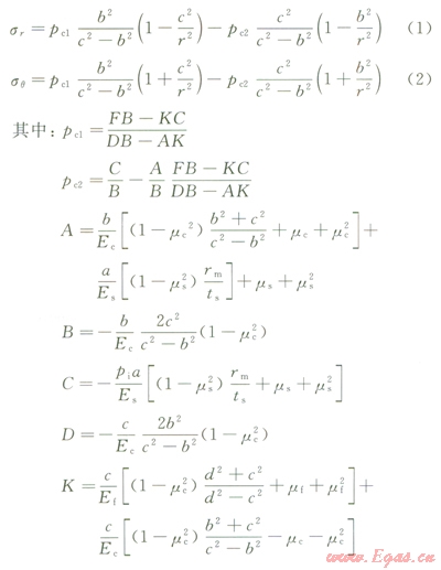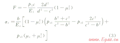 水泥環(huán)應(yīng)力分布及一界面處水泥環(huán)位移計(jì)算公式: