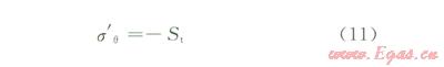 根據(jù)上面的分析可知,當(dāng)鉆井液密度過(guò)大時(shí),在q=0°和q=180°處井壁最容易發(fā)生破裂,該處井壁上的有效應(yīng)力為: