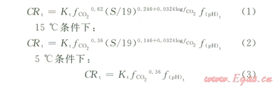 式中Kt為常數(shù),與溫度和腐蝕產物膜相關;S為管壁切應力,Pa;fCO2為CO2的逸度,bar;f(PH)t為pH值對腐蝕速率的影響因子。對于實際工況溫度下的腐蝕速率可通過在所測溫度及所規(guī)定溫度值問作線性插值得到。Norsok M506腐蝕模型是以實驗數(shù)據(jù)為基礎而建立的,對于腐蝕過程中化學及電化學反應的熱力學及動力學等機理考慮過少,可以用于預測材料的均勻腐蝕速率。
