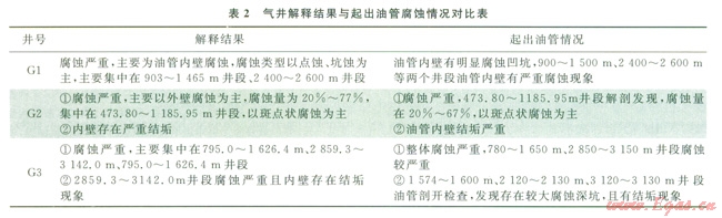 結(jié)合氣井更換油管作業(yè),將3口氣井起出油管的腐蝕情況與測(cè)井解釋結(jié)果進(jìn)行對(duì)比,結(jié)果見(jiàn)表2。