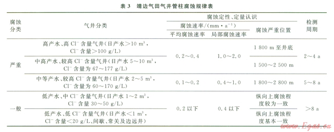 結(jié)合油管腐蝕因素分析情況以及靖邊氣田氣井腐蝕檢測(cè)結(jié)果,靖邊氣田氣井油管腐蝕總體規(guī)律見(jiàn)表3。