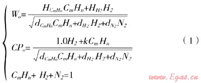 式中:CP0、W0——目標(biāo)氣的華白數(shù)(MJ/m3)和燃燒勢(shì);CmHn、H2、N2——碳?xì)浠衔?、氫氣、氮?dú)怏w積分?jǐn)?shù);HCmHn、HH2——碳?xì)浠衔?、氫氣的高熱?MJ/m3);dCmHn、dH2、dN2——碳?xì)浠衔?、氫氣、氮?dú)獾南鄬?duì)密度;當(dāng)CmHn為甲烷時(shí),k=0.3;當(dāng)CmHn為丙烷時(shí),k=0.6;