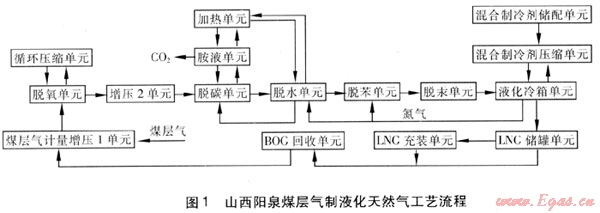 山西陽(yáng)泉煤層氣制液化天然氣工藝流程見圖1。