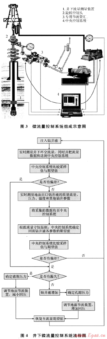 隨著油氣勘探開發(fā)難度的加大,人們相繼發(fā)展了雙梯度鉆井、泥漿帽鉆井、井底恒壓鉆井等各種控壓鉆井(MPD)方式來滿足復雜地區(qū)鉆井的需要[1~3]。目前控壓鉆井按照控制對象,可分為環(huán)空壓力剖面控制和環(huán)空流量控制兩類,上述幾種MPD都屬于環(huán)空壓力剖面控制,而微流量控制方法則屬于環(huán)空流量控制。相較于監(jiān)測環(huán)空壓力,對環(huán)空流量的監(jiān)測能極大地提高溢流、井漏等井下復雜情況監(jiān)測的準確性和靈敏性。而對于環(huán)空流量監(jiān)測本身(尤其針對氣井),在地面監(jiān)測和在井下監(jiān)測也存在著很大的差別,直接影響到一口井后續(xù)井控的能力,甚至關(guān)系到鉆井作業(yè)的成敗。本文介紹的井下微流量控制方法能夠隨鉆監(jiān)測井下環(huán)空流量的變化,進而調(diào)節(jié)井口回壓閥的開度,通過改變井底壓力來控制溢流或井漏的大小,從而實現(xiàn)對環(huán)空流量的控制。