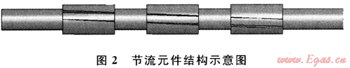 基于井下安全的考慮,這里選擇被廣泛應用于鉆井現(xiàn)場的井下穩(wěn)定器作為節(jié)流元件的參考結(jié)構(gòu)。在產(chǎn)生需要壓差的前提下,為了保證鉆井液(包括巖屑)能夠沿流道順利通過節(jié)流元件而不發(fā)生阻塞,這里使用多級節(jié)流的方法來達到預期的節(jié)流效果,如圖2所示。