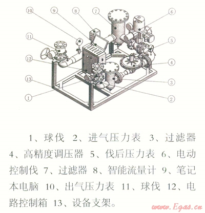 (1)、將“置換裝置”的進口端用高壓軟膠管及活接頭與氣源管道相聯(lián)通:出口端用高壓軟膠管及活接頭與球罐的進氣管道相聯(lián)通(此時球罐進氣管道應(yīng)早已與原進氣源切斷開),其余應(yīng)聯(lián)接的電路等各部份均聯(lián)接妥當。