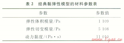 形成腔體模型后,需要對(duì)溶腔施加內(nèi)壓,通過(guò)施加法向應(yīng)力將儲(chǔ)氣庫(kù)內(nèi)壓分別設(shè)置為10MPa、15MPa、17MPa、20MPa、23MPa、25MPa和30MPa,選擇經(jīng)典黏彈性蠕變模型[8-9]計(jì)算在不同內(nèi)壓條件下溶腔不同直徑處的蠕變變形量。經(jīng)典黏彈性蠕變模型材料參數(shù)如表2所示。