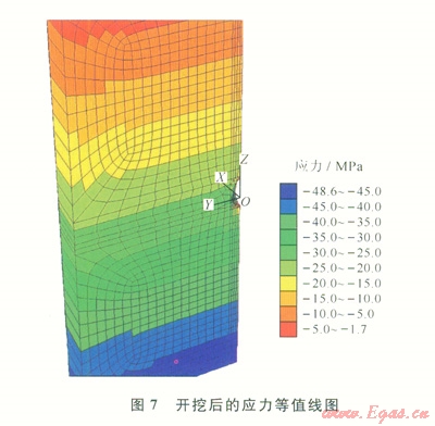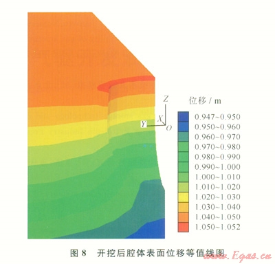 利用空模型形成腔體模型,通過(guò)設(shè)置groupl為空模型進(jìn)行開挖,開挖后的模型如圖7、8所示。