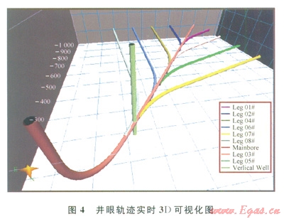 5)鉆井叮視化模塊。實現(xiàn)地面和井下信息的3D可視化,給技術(shù)人員和管理人員形象直觀地顯示實時數(shù)據(jù),輔助決策。3D可視化應(yīng)實現(xiàn)包括實時井眼軌跡、實時地質(zhì)模型和實時井眼狀況等整個鉆井過程的實時可視化,最終還應(yīng)該能夠?qū)崿F(xiàn)從地面設(shè)備到井下環(huán)境的一體化仿真。