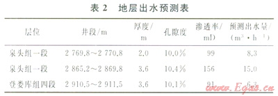 鉆至2900m(2870m進(jìn)入登婁庫(kù)組四段),扭矩開(kāi)始發(fā)牛波動(dòng),預(yù)計(jì)鉆達(dá)第3個(gè)水層(表2)。2914m接立柱后恢復(fù)鉆進(jìn)時(shí)返出氣體潮濕,判斷接換立柱時(shí)井下已經(jīng)出水。循環(huán)30min后粉塵返出,現(xiàn)場(chǎng)繼續(xù)采用氣體鉆井,鉆時(shí)3~15min/m。