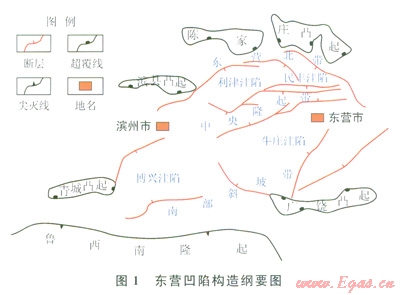 東營凹陷是隸屬于渤海灣盆地濟(jì)陽坳陷的次一級(jí)負(fù)向構(gòu)造單元,屬于新生代形成的斷陷盆地,呈典型的北斷南超構(gòu)造格局,北部為陡坡構(gòu)造帶(又稱東營北帶),中部為洼陷帶和中央隆起帶,南部為緩坡構(gòu)造帶(圖1)。
