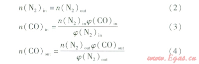 n(CO)out——產(chǎn)品氣中CO物質(zhì)的量,mol