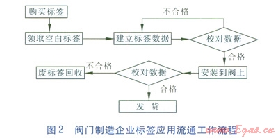 標(biāo)簽在閥門(mén)制造企業(yè)實(shí)現(xiàn)應(yīng)用流通的工作流程和產(chǎn)品在燃?xì)馄髽I(yè)應(yīng)用流通的工作流程見(jiàn)圖2、3。