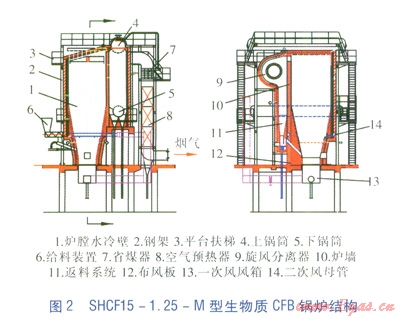SHCF15-1.25-M型生物質(zhì)CFB鍋爐外形見圖1。