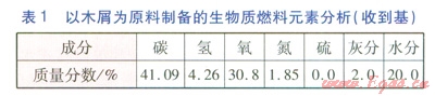 以木屑為原料制備的生物質(zhì)燃料元素分析(收到基)見表l。生物質(zhì)燃料的低位發(fā)熱量為14.46MJ/kg。
