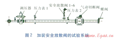在調(diào)壓器和氣動(dòng)切斷閥之間安裝6個(gè)安全放散并,測(cè)壓點(diǎn)選在安全放散閥下游的壓力表2處,用戶用氣設(shè)備切斷閥采用氣動(dòng)切斷閥進(jìn)行模擬。