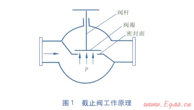 供熱管道上常用的大口徑閥門(mén)有金屬硬密封蝶閥、閘閥、截止閥,通常DN 200mm及以下口徑的閥門(mén)宜采用截止閥,DN 250~600mm口徑宜采用閘閥,DN 700mm及以上口徑宜采用多層金屬硬密封蝶閥。對(duì)于0.6MPa以下的供熱管道,截止閥的口徑可用到DN 400mm。這是由于對(duì)于同等口徑的閥門(mén),截止閥的密封面積最大,密封面積越大,閥門(mén)就越耐用,因此盡可能采用截止閥。但截止閥的缺點(diǎn)是作用在閥瓣上的壓力p所產(chǎn)生的力直接作用在閥桿的軸向上(見(jiàn)圖l),閥門(mén)的口徑越大,作用在閥桿軸向上的推力越大,因此,截止閥的口徑不宜過(guò)大。市場(chǎng)上也沒(méi)有很大口徑的截止閥。