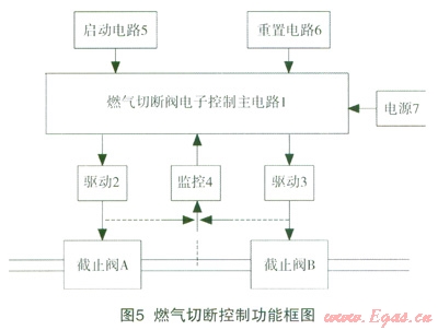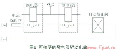 對(duì)于不使用繼電器控制而直接采用電子電路驅(qū)動(dòng)的燃?xì)馇袛嚅y,其驅(qū)動(dòng)設(shè)計(jì)同以上繼電器的驅(qū)動(dòng)設(shè)計(jì)一樣,相當(dāng)于采用燃?xì)馇袛嚅y代替繼電器。