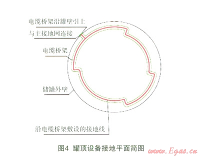 為滿足設(shè)備接地要求,外方利用在儲(chǔ)罐頂部沿接線箱、接線盒集中部位敷設(shè)的電纜橋架巾通長(zhǎng)敷設(shè)的截面為70mm2絕緣銅絞線(green insulated stranded copper conductor)作為接地線,該接地線與主接地網(wǎng)連接。罐頂設(shè)備包括橋架、平臺(tái)扶手、平臺(tái)出入口靜電消除器、放散管接地板、LNG潛液泵等均采用截面為70mm2絕緣銅絞線與橋架內(nèi)接地線連接。罐頂接線箱、插座等均采用截面為35mm2絕緣銅絞線與橋架內(nèi)接地線連接。
