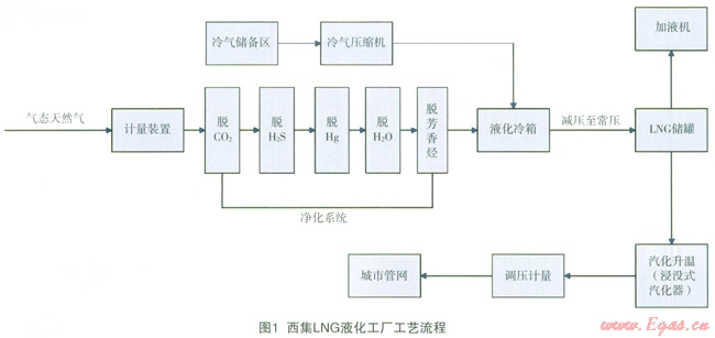 西集LNG天然氣液化工廠的基本工藝過(guò)程包括預(yù)處理(凈化)、液化、儲(chǔ)存、外輸、氣化等,采用混合冷劑制冷工藝將天然氣進(jìn)行液化。