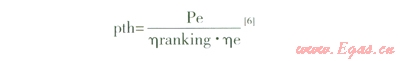 由動(dòng)力系統(tǒng)的熱力參數(shù)來(lái)計(jì)算朗肯循環(huán)效率1qranking,假定發(fā)電機(jī)效率為he,于是可以得到動(dòng)力部分所需要的額定熱負(fù)荷為Pth。