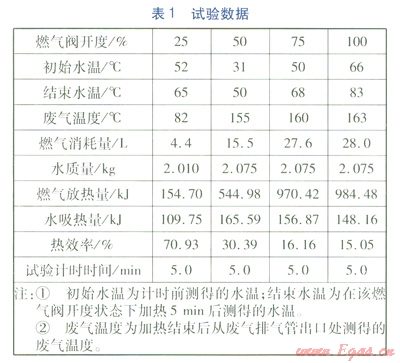②解釋了試驗(yàn)過程中,當(dāng)燃?xì)忾y開度為25%時(shí),燃?xì)庠跔t腔內(nèi)可以平穩(wěn)燃燒,而隨著燃?xì)忾y開度增大,燃?xì)鉄o法穩(wěn)定燃燒,火焰頻繁跳躍,發(fā)出“砰砰”聲。當(dāng)燃?xì)忾y開度提高到100%時(shí),甚至出現(xiàn)打不著火的現(xiàn)象。試驗(yàn)計(jì)算,熱效率隨著燃?xì)忾y開度的增大而減小。