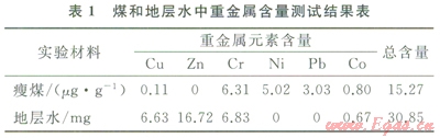 采用電感耦合等離子體質(zhì)譜法(ICP-MS)對煤和地層水中部分重金屬元素進行檢測(表1)。