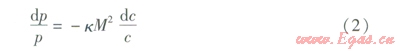 方程(2)為促使蒸汽流速改變的力學(xué)條件,說明蒸汽在噴嘴中的流速和壓力變化方向相反,蒸汽噴嘴是通過蒸汽流膨脹以獲得高速流動的流體機械部件。