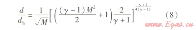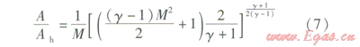 設(shè)喉口截面的面積為Ah,則M=1時,A=Ah,即: