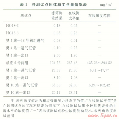 成莊6號閥組有l個測試點(圖4)。該點上游氣體部分來自粉塵含量較大的潘河區(qū)塊[10],通過測試可獲知其氣質(zhì)狀況。