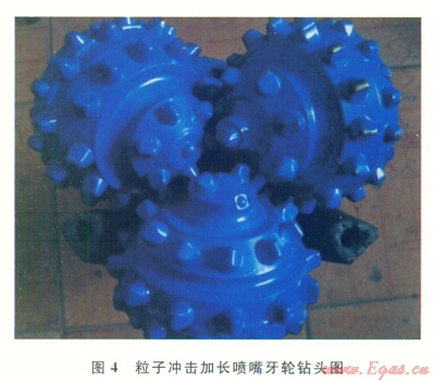 4)研制的適用于四川須家河組的粒子沖擊加長平噴嘴牙輪鉆頭,通過采用加長耐磨噴嘴,提高了粒子沖擊破巖的效率。
