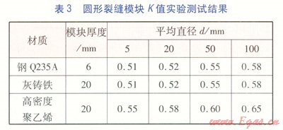 經(jīng)多次實(shí)驗(yàn)驗(yàn)證,在燃?xì)獾蛪汗鉅顩r下,改變?nèi)細(xì)獾膲毫?span lang="EN-US">(緩沖罐內(nèi)燃?xì)鈮毫?span lang="EN-US">),測(cè)試的K值不變,且K值受模塊壁厚影響甚微。由此得出管道裂縫流量修正系數(shù)K的取值范圍,見(jiàn)表4。