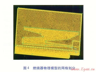 目前,市場(chǎng)上熱水器的穩(wěn)壓室、布風(fēng)板幾乎沒(méi)有設(shè)計(jì)依據(jù)。因此,采用一種科學(xué)且有效的方法對(duì)穩(wěn)壓室、布風(fēng)板進(jìn)行優(yōu)化設(shè)計(jì),對(duì)提高熱水器的燃燒穩(wěn)定性具有現(xiàn)實(shí)意義。從布風(fēng)原理來(lái)看,風(fēng)機(jī)送入穩(wěn)壓室的空氣被布風(fēng)板較為合理地分配到燃燒器是一個(gè)典型的流體力學(xué)問(wèn)題[3]。因此,本文采用計(jì)算流體力學(xué)(CFD)方法對(duì)熱水器燃燒器進(jìn)風(fēng)部分結(jié)構(gòu)進(jìn)行優(yōu)化。