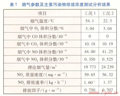 表1中,兩個(gè)工況下的煙氣采樣分析結(jié)果是以煙囪總出口處(C點(diǎn))的數(shù)據(jù)進(jìn)行對(duì)比分析。表1中*為折算值,是將工況1的NOx排放速率折算到與工況2供應(yīng)相同的供熱量條件下的NOx排放速率。表1中排放因子定義為每1m3天然氣燃燒后排放的NOx的質(zhì)量??梢钥闯?,同樣消耗1m3天然氣,工況2比工況1排放因子減少了5.73%。