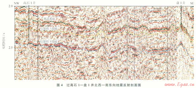 盆地內(nèi)西南側(cè)剝蝕較強(qiáng)烈,周公l、漢深1、老龍1井與威117井的下寒武統(tǒng)麥地坪組分別與燈影組上、下亞段不同層段相接觸,周公1井與漢深l井已剝蝕至燈影組下亞段,老龍l井與威117井燈影組上亞段白云巖層殘厚15.5m與31.55m。盆地中部剝蝕作用較弱,如高科l、安平1井與女基井燈影上段白云巖層分別殘厚365.5m、339.38m與240.8m。向川中東南側(cè)剝蝕作用逐漸增強(qiáng),地震剖面顯示明顯的剝蝕削截現(xiàn)象(圖4),荷深1井燈影組上亞段白云巖層殘厚僅為2.2m。