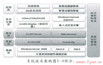 技術(shù)支撐層包括COM+/COM/DCOM,Windows Internet Explorer,ArcGIS-Maplex,嵌入式開(kāi)發(fā)引擎等。