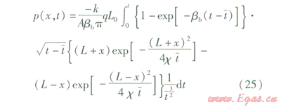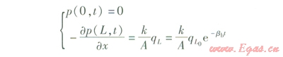 式中p(x,t)——管道過余壓力(絕對),Pa