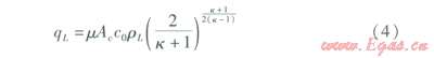 對于高壓天然氣輸送管道,當(dāng)出現(xiàn)開裂泄漏造成較大量的天然氣泄漏時,破裂口天然氣流動將會較長時間都處于臨界流動狀態(tài),即壓力比b≤bc。