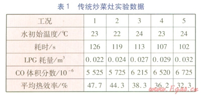 為驗(yàn)證新型炒菜灶的性能,將其與傳統(tǒng)炒菜灶進(jìn)行熱態(tài)對(duì)比實(shí)驗(yàn)。實(shí)驗(yàn)主要對(duì)比炒菜灶的熱效率、節(jié)能效果、排放特性。
