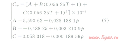 計算水泥漿等溫壓縮系數(shù)時,認(rèn)為水泥漿中固相顆粒不可壓縮,而水相可以壓縮。首先根據(jù)BrillBeggs提出的經(jīng)典模型,計算高溫高壓下水的等溫壓縮系數(shù):