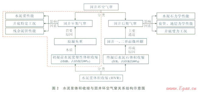 環(huán)空氣竄是幾乎所有天然氣井固井都存在的一個潛在問題,輕則導(dǎo)致井口環(huán)空帶壓,重則發(fā)生不可控井噴事故,嚴(yán)重影響油氣井的固井質(zhì)量和安全[1]。準(zhǔn)確預(yù)測水泥漿凝結(jié)過程中的氣竄潛在風(fēng)險是有效預(yù)防環(huán)空氣竄現(xiàn)象的關(guān)鍵技術(shù)?,F(xiàn)有水泥漿防氣竄能力評價預(yù)測方法主要考慮了水泥漿失水、膠凝過渡時間等性能[2-8],對井下地層、套管等相關(guān)特定工況影響氣竄的考慮較少,因此目前未能很好地解決環(huán)空氣竄問題。本文結(jié)合水泥漿塑性體積收縮是導(dǎo)致孔隙壓力下降的本質(zhì),分析了初凝前塑性態(tài)水泥漿體積收縮與孔隙壓力之間的量化關(guān)系,提出了固井早期氣竄問題的氣竄預(yù)測新方法。該方法較現(xiàn)有經(jīng)驗公式法而言,可更為
