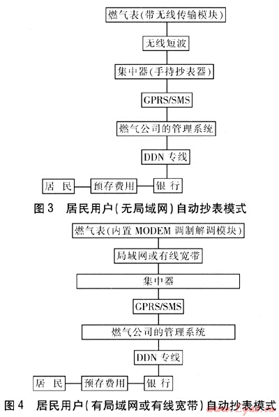 由購買氣量改為預(yù)存費(fèi)用,預(yù)存費(fèi)用的數(shù)值保存在燃?xì)夤镜臄?shù)據(jù)管理中心,以便根據(jù)燃?xì)鈨r(jià)格實(shí)時(shí)調(diào)整,避免燃?xì)鈨r(jià)格上漲前用戶囤氣給燃?xì)夤編頁p失。此方式綜合了國外的先進(jìn)技術(shù)和我國的國情,將成為我國城鎮(zhèn)燃?xì)饩用裼脩?、商業(yè)用戶今后計(jì)量收費(fèi)的發(fā)展趨勢(shì)。對(duì)于其他不適合預(yù)付費(fèi)方式的城鎮(zhèn)燃?xì)庥脩簦窈蟀l(fā)展的趨勢(shì)是自動(dòng)抄表。