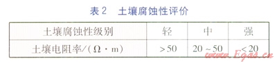 本次土壤腐蝕性檢測,利用ZC-8接地電阻測量儀測試土壤的電阻率。管道周圍土壤電阻率在20.0~75.2W·m范圍。按照CJJ 95—2013《城鎮(zhèn)燃氣埋地鋼質(zhì)管道腐蝕控制技術(shù)規(guī)程》中土壤電阻率腐蝕性評價指標的劃分(見表2),埋地燃氣鋼管周圍土壤腐蝕性在輕、中級別。
